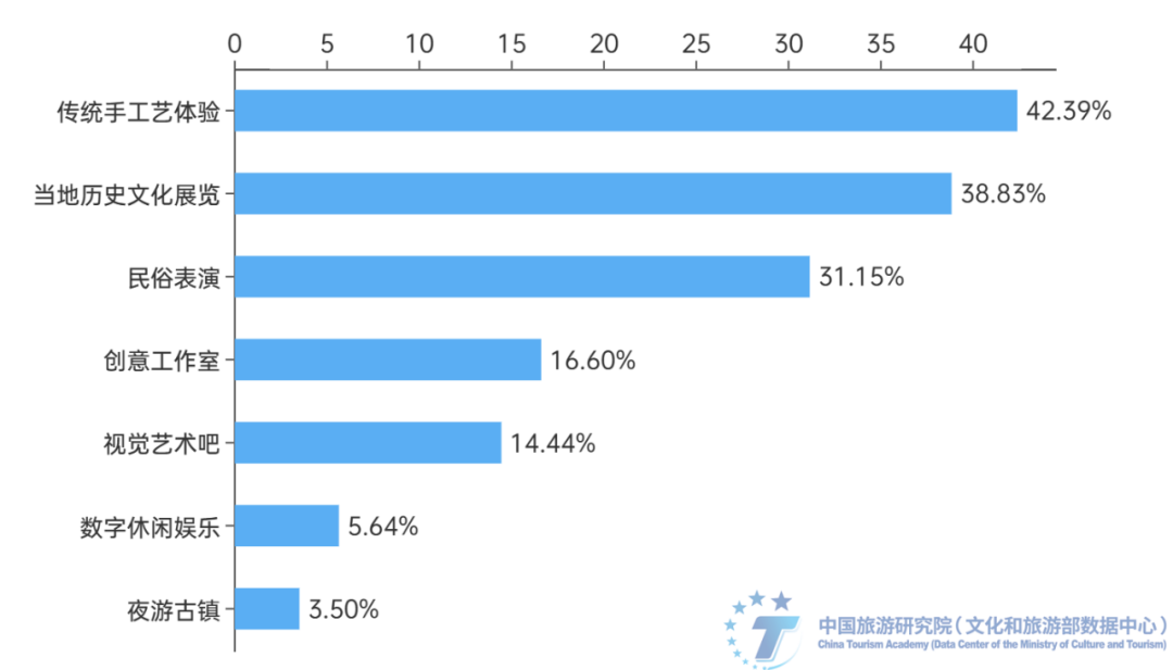 游客对在地文化的体验需求与期望较高。受访者希望古镇公共空间能够给予的服务与体验由高至低依次是传统手工艺体验(42.39%)、当地历史文化展览(38.83%)和民俗表演(31.15%)。创意工作室(16.6%)、视觉艺术吧(14.44%)、数字休闲娱乐(5.64%)和夜游古镇(3.5%)的选择比例相对较低。