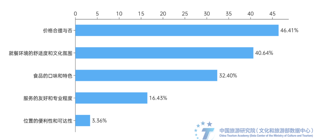 图11 选择古镇餐饮场所时,受访者最看重的因素及占比