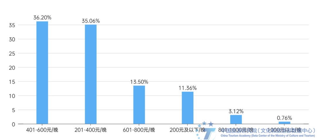 图15 受访者认为古镇旅游合适的住宿价格范围及相应受访者占比