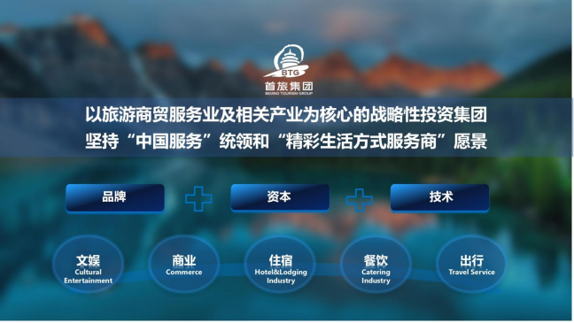 首旅集团作为北京市属以旅游商贸服务业及相关产业为核心的战略性投资集团,自1998年创建以来,坚持“中国服务”统领和“精彩生活方式服务商”愿景,顺利获得“品牌、资本、技术”三大核心能力的打造,形成了“文娱、商业、住宿、餐饮、出行”五大业务单元。现在,集团旗下拥有首旅酒店、王府井、全聚德3家上市公司和北京饭店、北京环球度假区、北京野生动物园、北京古玩城、东来顺、首汽集团等166个品牌和15家老字号,集团资产规模超1700亿元。